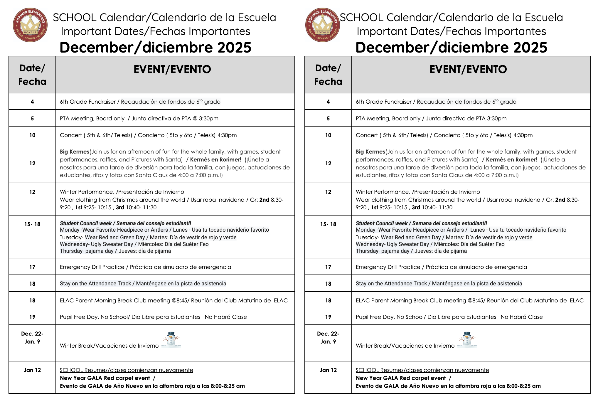 Parent Welcome Letter (English and EspaƱol)