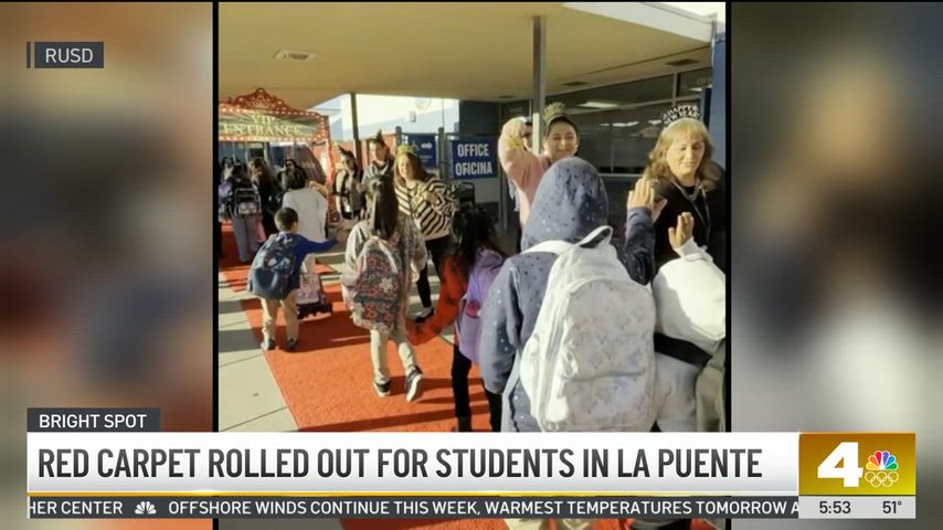 KNBC-TV Morning News "Bright Spot" Coverage of Rorimer Elementary 1/13/26: Rorimer students were welcomed back to school from Winter Break Hollywood-style with a red carpet welcome by teachers and staff cheering them on and saying Happy New Year!